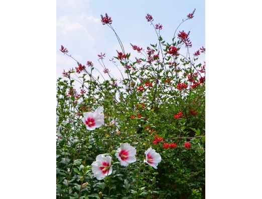フヨウとヒシバデイコ、楽しいお花がいっぱい咲いてます。