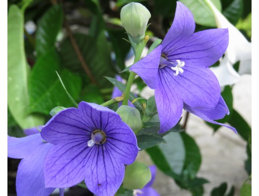 「キキョウ(桔梗)」 (※雌しべの柱頭が開いている右側と、閉じている左側の比較。) 花と緑と自然の情報センターにて――。