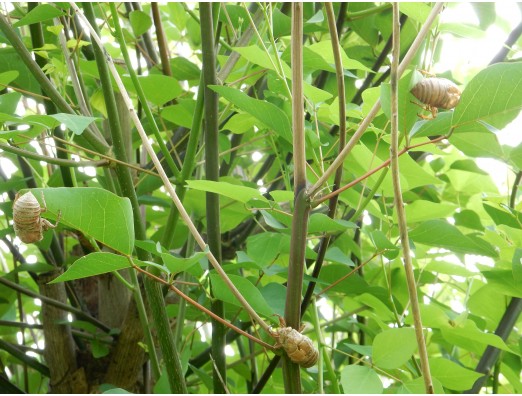 この木の枝に蝉の抜け殻がいっぱいありました。