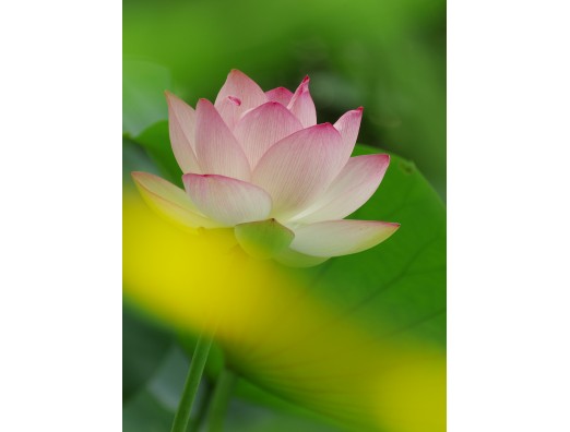 大池の北側の木陰に咲くハスを、陽のあたる葦のすきまからパチリ。