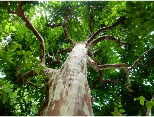 シマサルスベリの樹皮と新緑のコントラストが美しい。