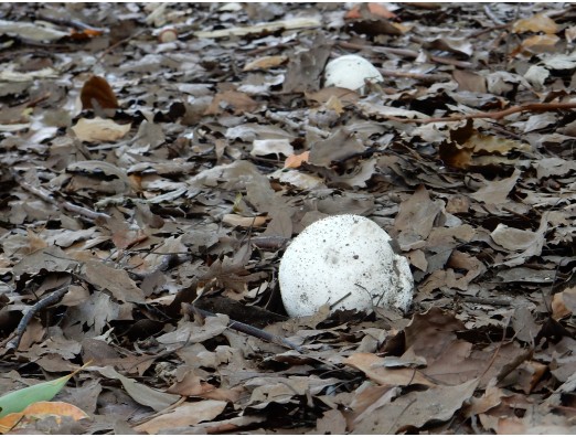 落ち葉の中に真ん丸キノコ???を発見。ちょっと不気味でした。