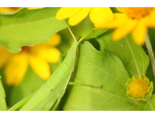 9/05 午前 晴れ。 ショウリョウバッタですかね? 葉っぱを食べてますね。