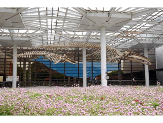 花畑を泳ぐクジラです。