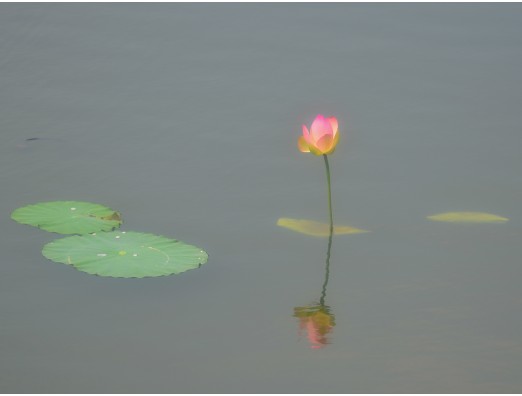 大池の真ん中に一輪だけ、美しい蓮の花。