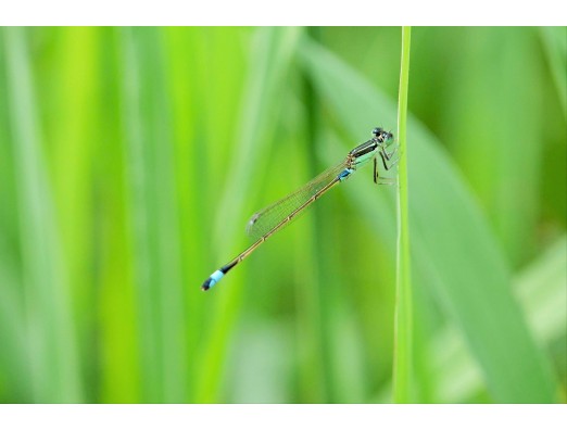 池のそばの草むらにいました。 わぁ、めずらしいと、思ったのですが、 よく見る種類のイトトンボらしいですね。