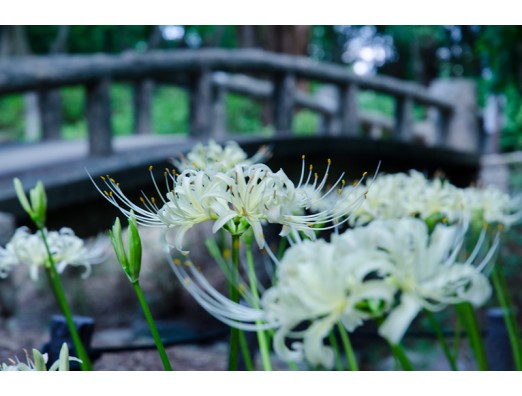 小池の橋の袂で曼珠沙華が静かに咲いていました