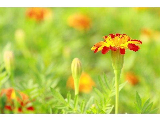 マリーゴールドが見頃です。 花言葉はあまりよくないと、言われてますが、私は大好きな花です。 背丈が,もう少し伸びてくる日を心待ちにしています。