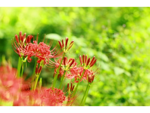 まだ若い彼岸花、 湖畔の辺りを明るく飾ってます。