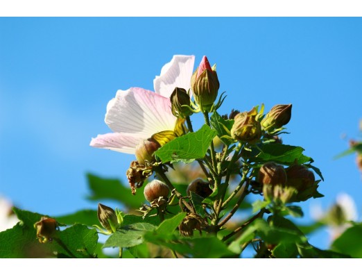渓流近く、大きくなった ”サキシマフヨウ”の木が、ピンクの花を咲かせてます。
