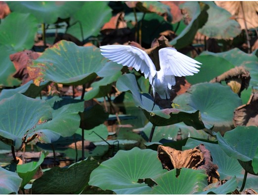 白鷺が大池で捕食中でしょうか、真っ白できれいです。