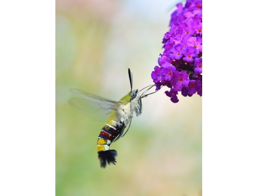 オオスカシバ、太い胴体、透明の翅、素早く飛ぶ、スズメガの仲間です。