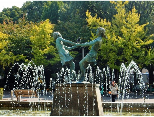 友情の像。鳩も仲間に入れて欲しいみたい。