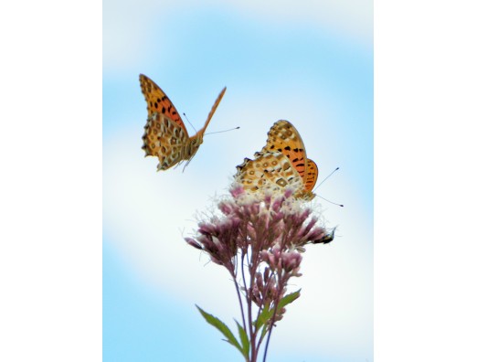 フジバカマに蝶々が元気よく飛び回っています。
