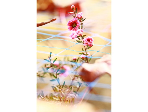 2015-11-11 午後 西の花壇にて。 網目から首を出して頑張っています。