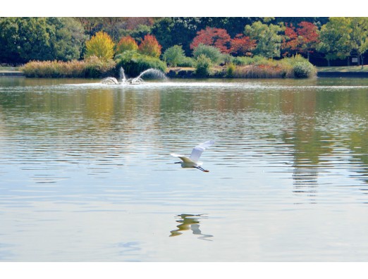 樹木たちが、コサギを見守っているような風景です。