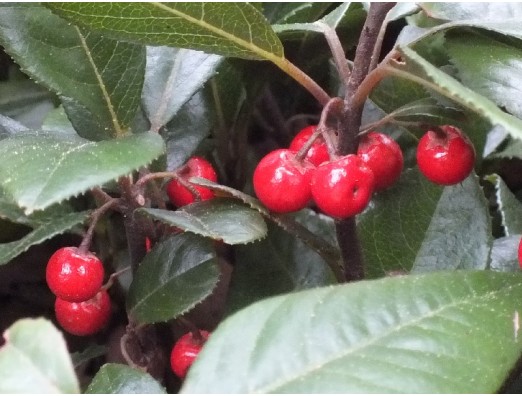 ヤブコウジ(藪柑子)(Ardisia japonica) 別名、ジュウリョウ(十両) サクラソウ科 ヤブコウジ属 常緑小低木。林内に生育し、冬に赤い果実をつけ美しいので、栽培もされる。