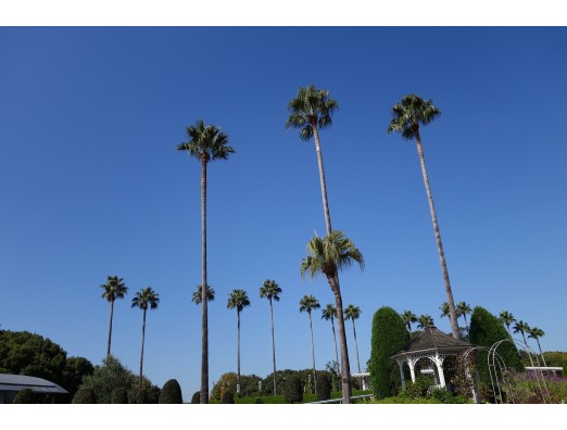 青空の中のヤシの木は都会の中とは 思えない風景でした