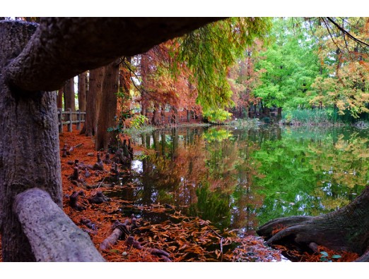 落ち葉と水面に映る秋