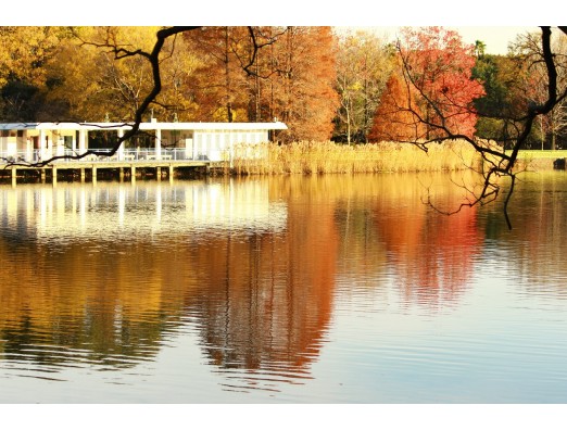 2015-12-09 撮影。 西の花壇からの眺め。 西日に照らされて綺麗な色に、、、