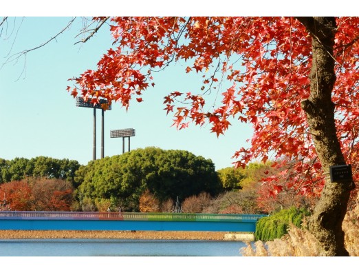 2015-12-08 撮影。 芝生広場からの眺め。 (右側の太い幹はソメイヨシノです。)