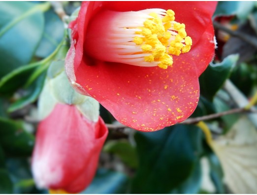 紅をさしたような赤い花びらに花粉がこぼれてとても美しかったです