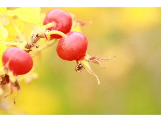 2015-12-16 撮影 バラ園内の”浜茄子”の実。 葉は黄色く変わり、真っ赤な実が目立つようになって、とてもきれいでした。