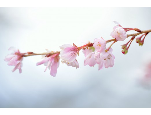 十二月の十月桜、薄雲のかかった白い空に、優しいピンクの色がより美しく感じます。