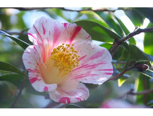 ツバキ園の一画にて咲くツバキ・「昭和錦」