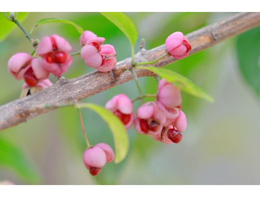 マユミ、お花の後にできる実がかわいい、淡い紅色に4つ裂けてます。