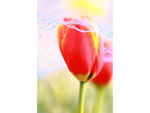 2016-1-26 撮影 西の花壇にて 青い網の中の冬チューリップ。