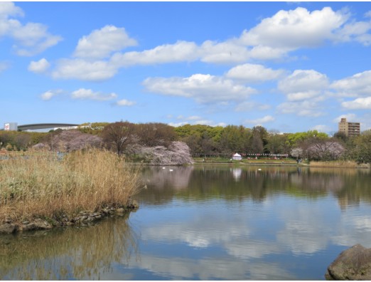 風景「池越しの桜景色」――― 長居植物園、大池東側にて。 《ネオ一眼:RAW》