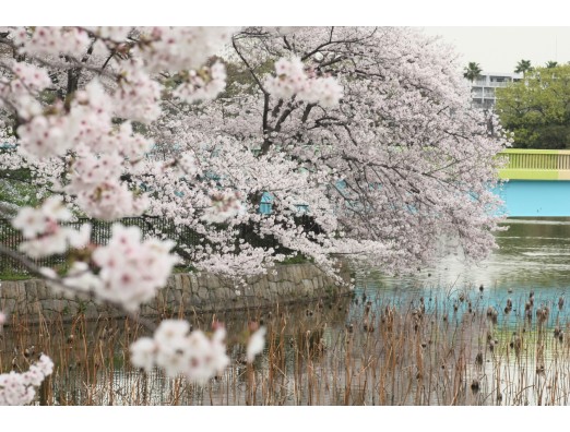 「大池の桜景色」 長居植物園、大池西側にて―――。 《90mm》