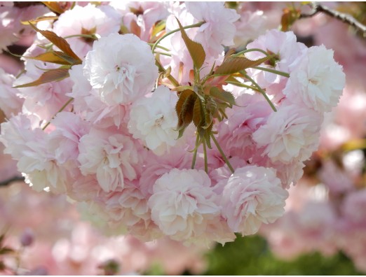 淡いピンクの八重桜もまたかわいいですね。葉の色が桜餅を連想させます^^