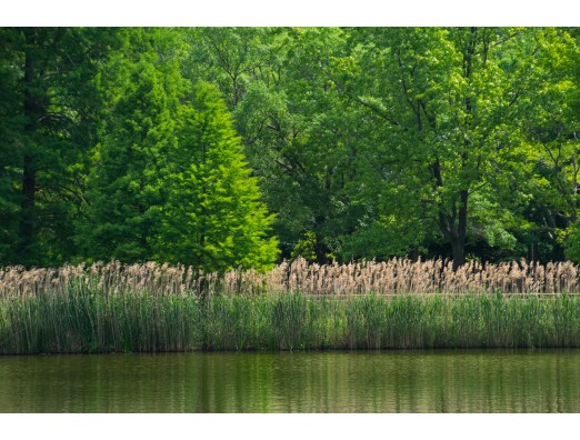 大池のほとり、綺麗に並んでいる姿と緑がきれいでした。