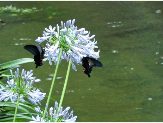 クロアゲハのペアがアガパンサスの蜜を一生懸命吸っていました。