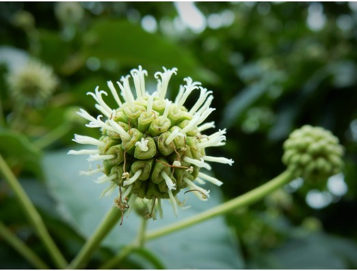 カンレンボクの花。雄しべはすでに枯れ雌しべが伸びています。