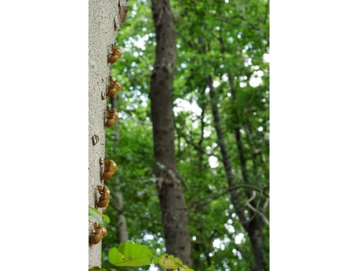 たくさんのセミの抜け殻の一部が綺麗に並んでました。