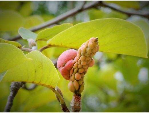 ハクモクレンの可憐な花からは想像もできないぐらいグロテスクな実。