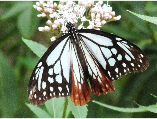 アサギマダラ(浅葱斑)(Parantica sita niphonica) 雄、花はフジバカマ タテハチョウ科 マダラチョウ亜科 前翅長、43~65mm