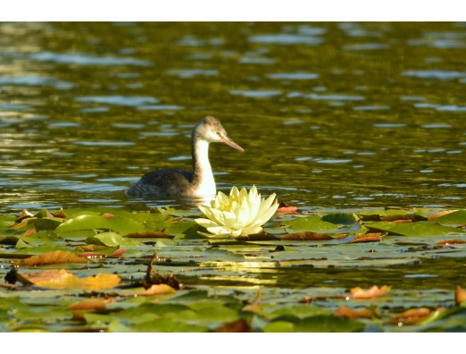 私は長居植物園でカンムリカイツブリは初見です。 甘ピン、証拠写真です。