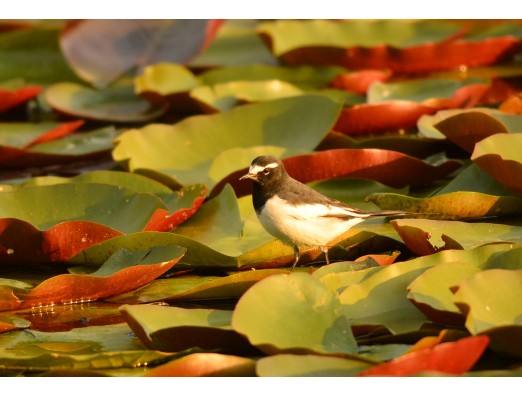 睡蓮の葉の上で餌を啄んでいました。 長居植物園では余り見かけない鳥です。