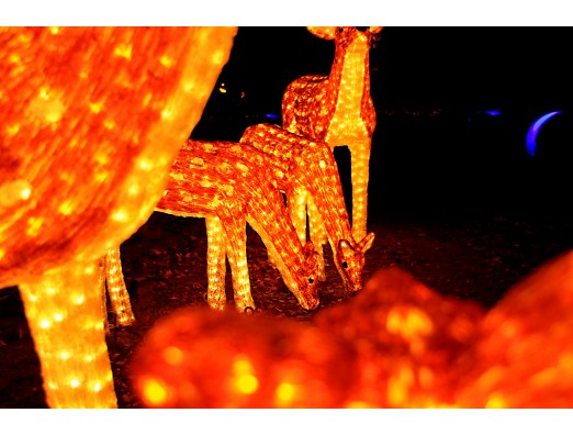 トナカイの親子が光の国で 遊んでいる光景を撮りました。