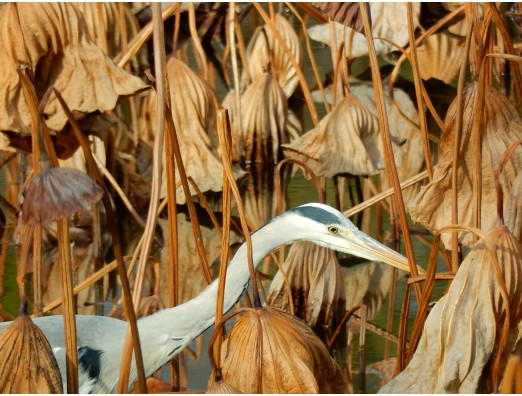 獲物を狙うアオサギ。真剣です。