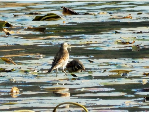 スイレン池にツグミのペアが降り立って休憩していました。