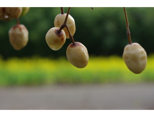 1月9日 寒咲花菜を背景にセンダンの実を撮ってみました