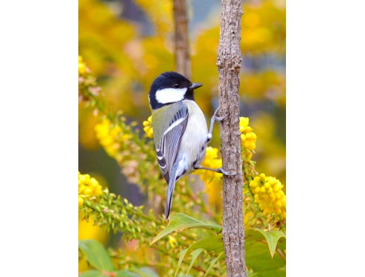 2017-02-03撮影 シジュウカラとヒイラギナンテン 長居公園にて