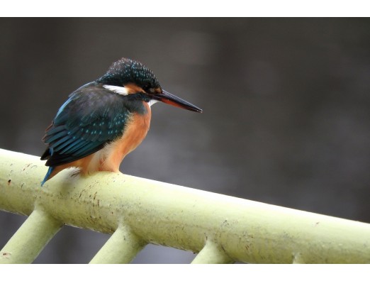 枯れた蓮が刈り取られ手すりから小魚を狙っている姿が時折見られます。