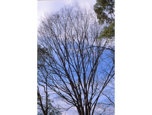 花を探した植物園で、見上げると青の空と 白の雲の冬の空が樹木の後ろに 広がっていました。 ニコんF4s 85mF1,8GVR シャッタースピード500AE