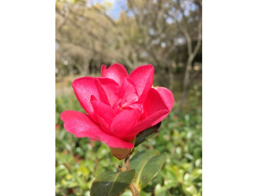 観賞用に植えられた植物ではない椿の木、その剪定をし忘れたのか、伸びきった一本の枝には太陽の光をスポットライトの様に浴びた美しい椿姫の姿がありました。